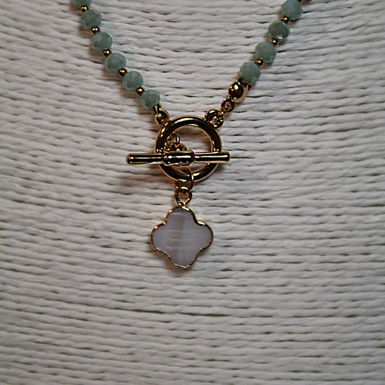 Delicate and dreamy, The Seaglass Serenade Necklace features soft green beads reminiscent of ocean tumbled glass, anchored by a glowing clover charm and warm gold toggle. With a coastal calm and boho spirit, this necklace feels like a sunlit walk along the shore, effortless, elegant, and made for wandering hearts.