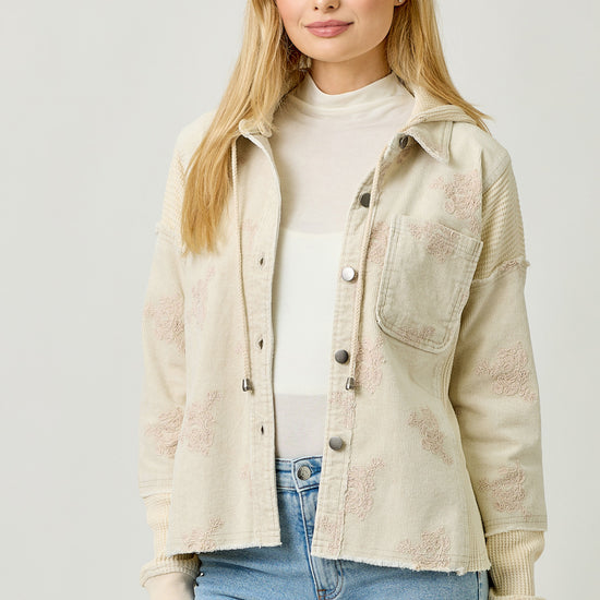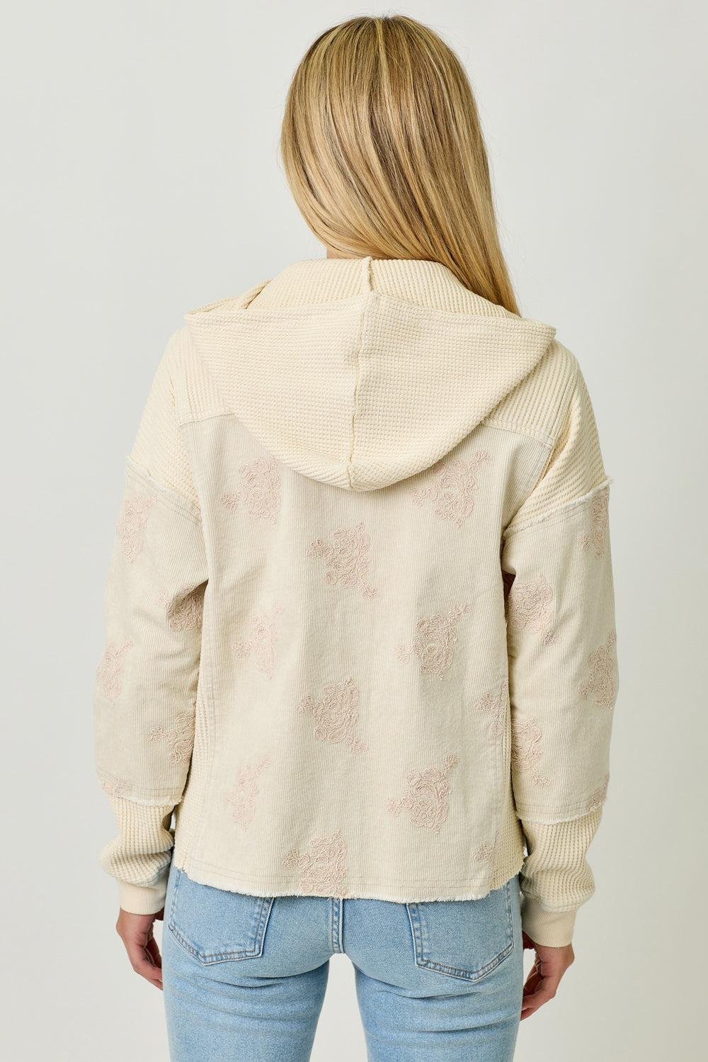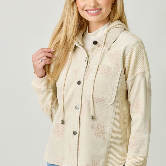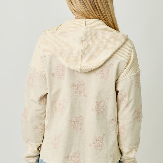 Soft, chic, and endlessly versatile, the Blushfield Hooded Jacket by Mystree is a layering essential you'll reach for season after season. Designed in a washed almond hue with delicate embroidered details, it strikes the perfect balance between casual comfort and feminine charm.