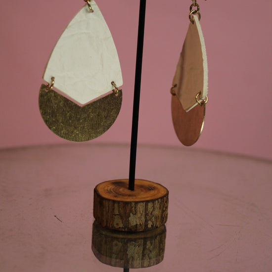 Channel earthy elegance with the Desert Eclipse Earrings, where raw textures meet modern geometry. Crafted with white crinkle material and brushed brass crescent moons, these lightweight statement pieces evoke sun-drenched landscapes and free-spirited wanderlust.