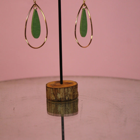A simple blend of nature and elegance. Forest Drop Earrings feature a matte green pendant framed by a delicate gold teardrop, lightweight, airy, and quietly bold.