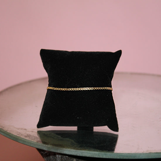 This delicate Gold Chain Bracelet, dipped in 14k gold, offers a subtle yet stunning shine that enhances any ensemble. Its fine craftsmanship ensures a lightweight, comfortable fit, perfect for layering or wearing alone as a graceful statement. Add a touch of refined elegance to your jewelry collection with this versatile piece.