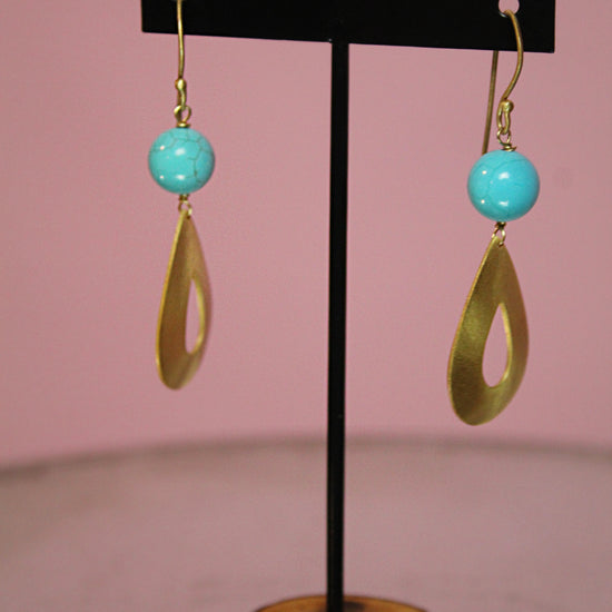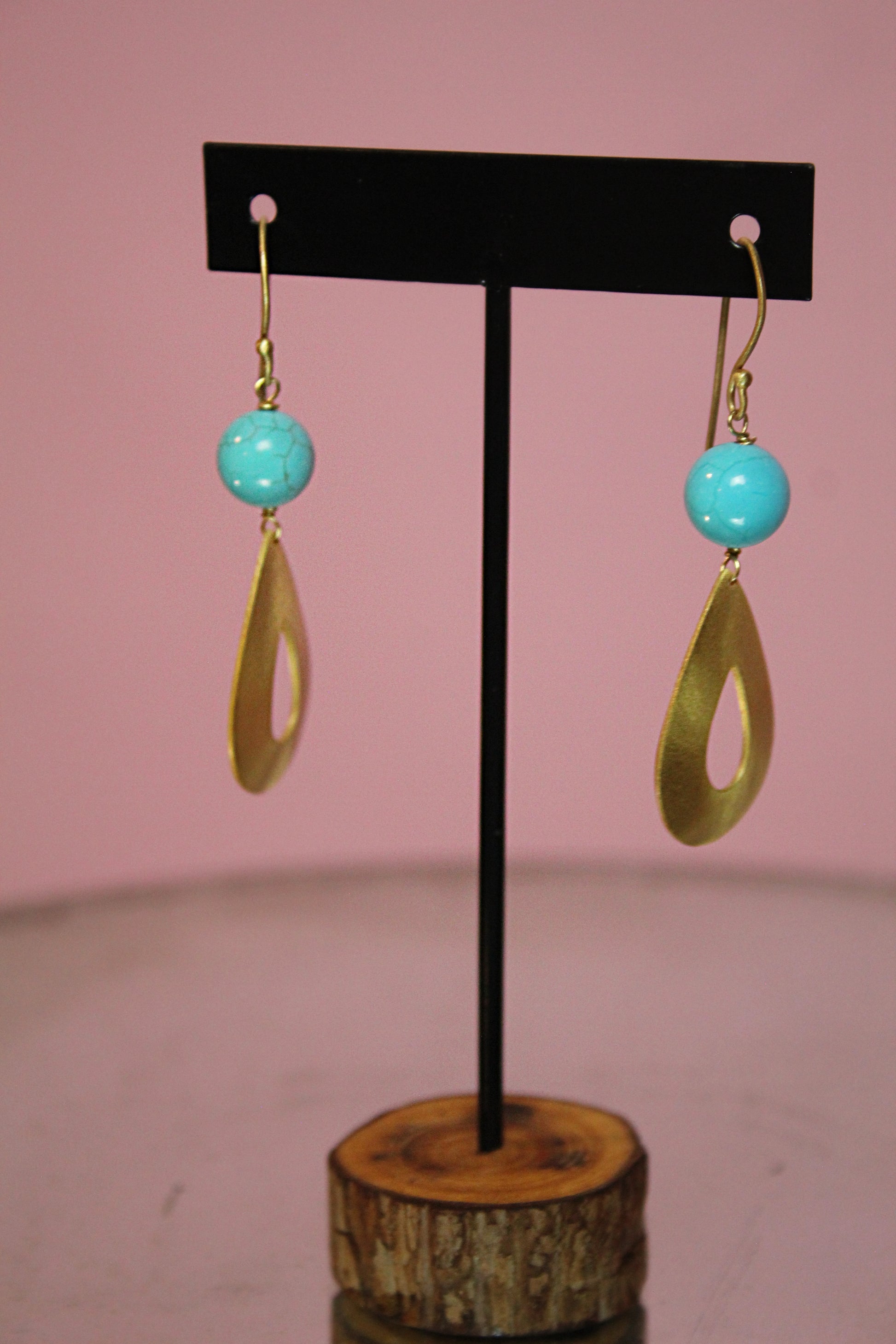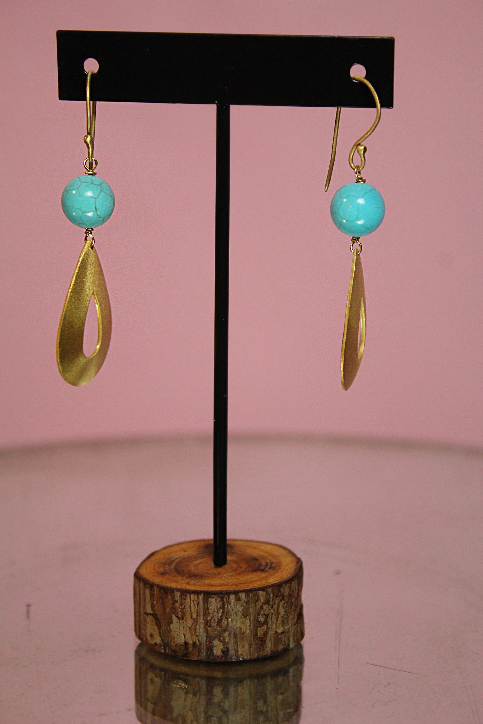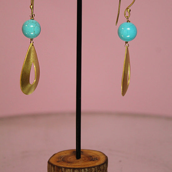 Golden teardrops meet tranquil turquoise in The Saffron Sky Drops earrings, a bold yet breezy pair that channels the spirit of sunset desert skies and free-spirited wanderers. Lightweight and full of movement, these earrings are the perfect pop of boho charm for any outfit, from market strolls to moonlit gatherings.