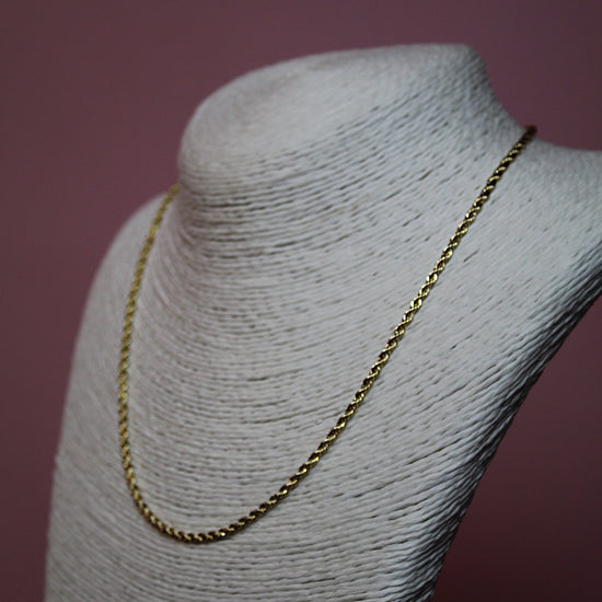 With its fluid twist and radiant glow, The Golden Current Necklace is a rope-style necklace, dipped in 14k gold, that flows effortlessly from day to night. Crafted to catch the light with every turn, it's a timeless staple that brings warmth, texture, and quiet confidence to any look.