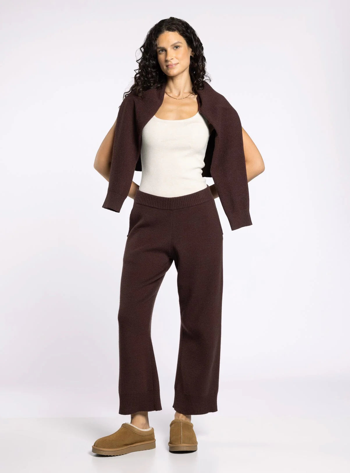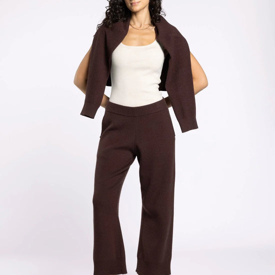 The Greta Pants in Brown, from Thread & Supply, deliver effortless polish with a touch of laid-back charm. Their soft, comfortable knit and fluid movement make them a go-to for everything from casual mornings to dressed-up evenings. The rich brown hue adds warmth and depth, making them a perfect year-round staple.