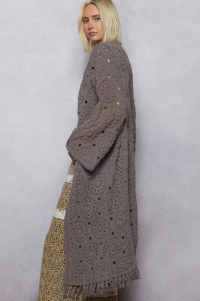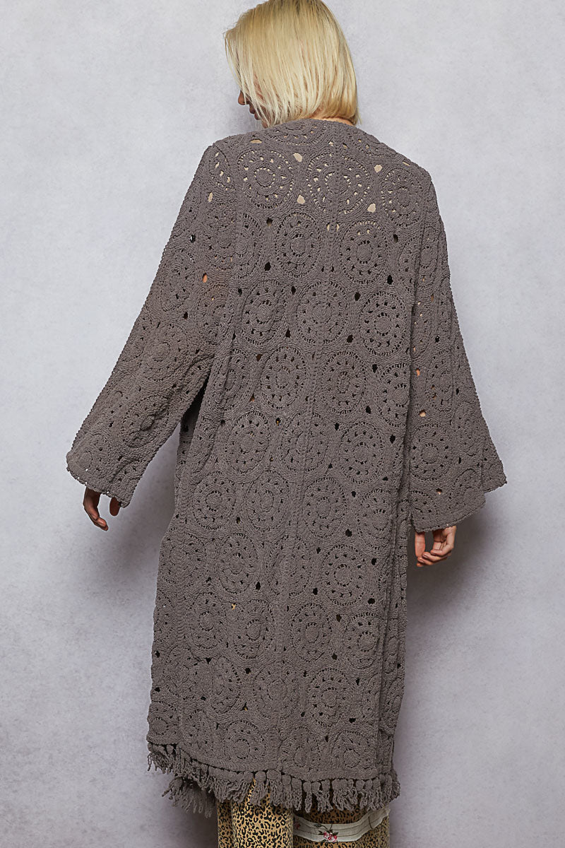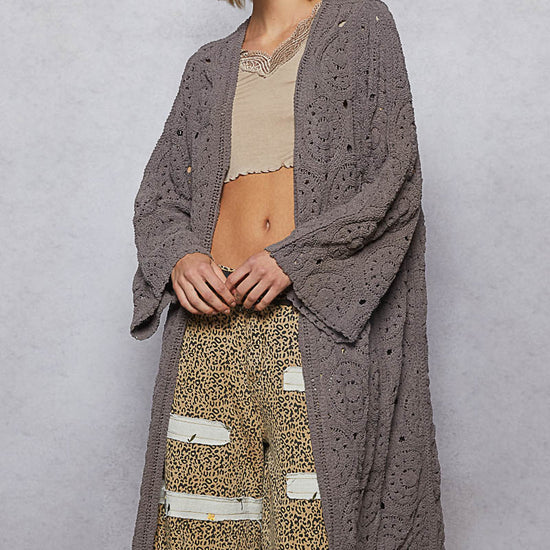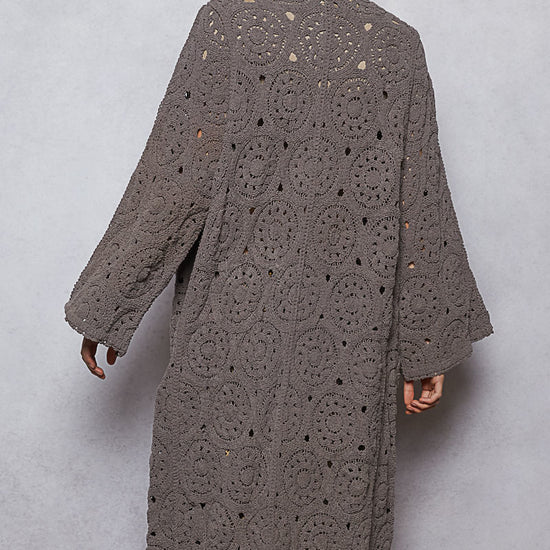 This long sleeve cardigan from POL Clothing features a roomy fit and intricate crochet design showcasing a variety of knit patterns. Crafted from 100% polyester, it offers lightweight comfort and durability, making it a versatile layering piece for any wardrobe. Its detailed weave adds texture and visual interest, perfect for elevating casual or dressy outfits with expert craftsmanship.