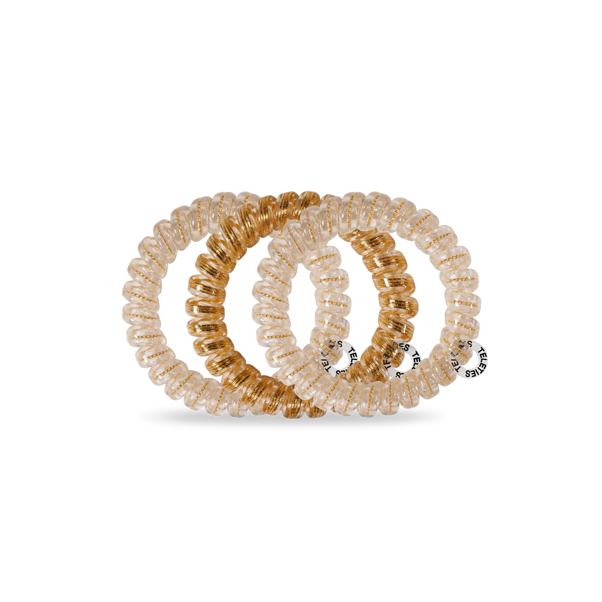 Hold your hair and enhance your style with Teleties Luxury Living Hair Tie-- the strong grip, no-rip hair tie that doubles as a bracelet. Strong, pretty, and stylish, Teleties are designed to withstand everyday demands while taking your look to the next level. Pack of three