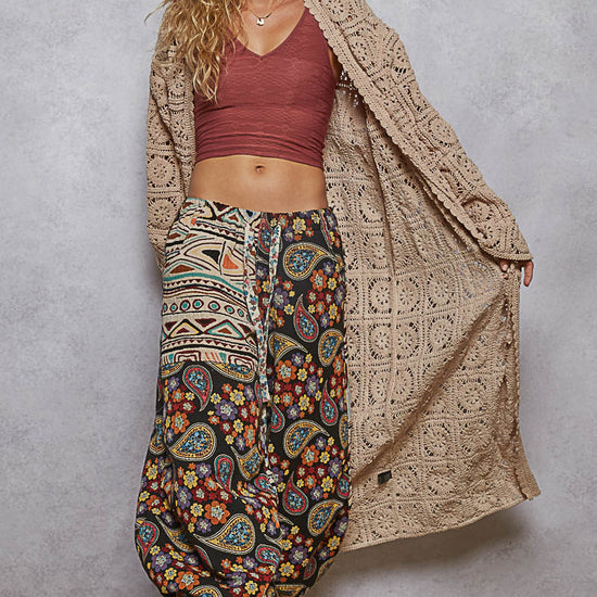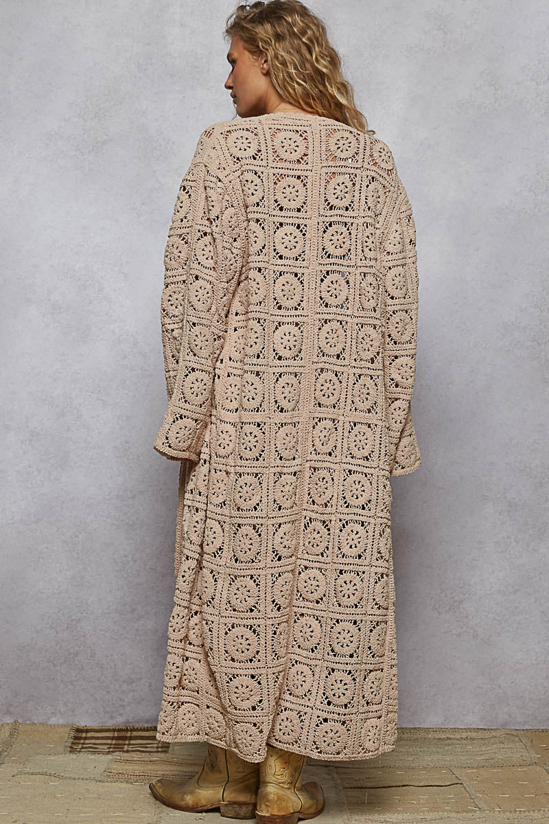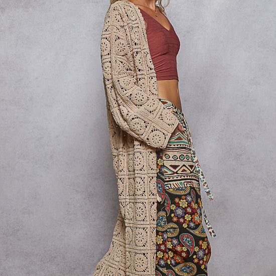 This V-neck long sleeve cardigan from POL Clothing features a roomy fit crafted from 100% polyester crochet fabric. Its intricate weave knit patterns add texture and visual interest, while the drawstring detailing allows for adjustable styling. Perfect for layering, this cardigan combines comfort with a sophisticated handcrafted look.