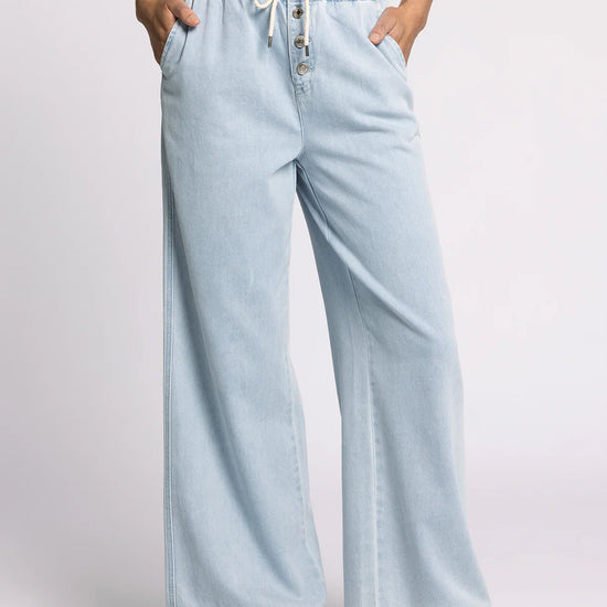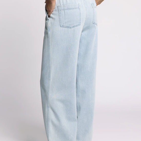 The Norman Pants in Isla Wash from Thread and Supply reinvent a timeless silhouette with a high-rise, wide-leg design that offers both comfort and style. Featuring dual side pockets for practicality and an elastic waistband paired with an exposed button front, they provide a tailored fit with ease of wear. Ideal for those seeking a sophisticated yet relaxed look, these pants combine classic elements with modern details for versatile wardrobe appeal.