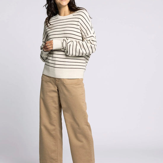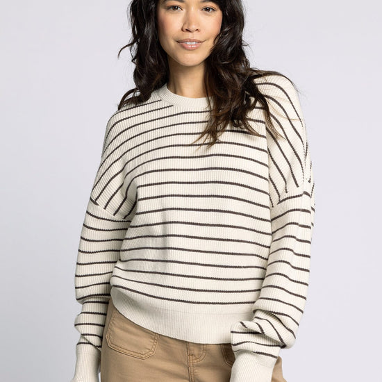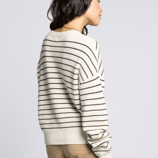 Wrap yourself in timeless comfort with The Ely Sweater from Thread & Supply. Featuring cream and chocolate stripes, this sweater pairs perfectly with your favorite pair of denim for an effortlessly put-together look. Lightweight yet cozy, it's your new go-to for coffee runs, weekend markets, and slow Sunday mornings.