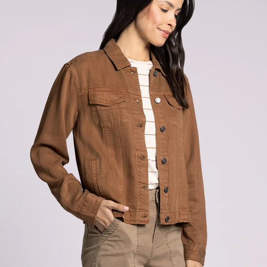 The Jackie Jacket in toffee from Thread & Supply combines timeless style with everyday comfort. Crafted with attention to detail, this versatile jacket elevates any outfit while providing a perfect fit. Whether layered over casual wear or dressed up for a night out, it offers both warmth and effortless sophistication. Make the Jackie Jacket your go-to piece for a polished, confident look every day.