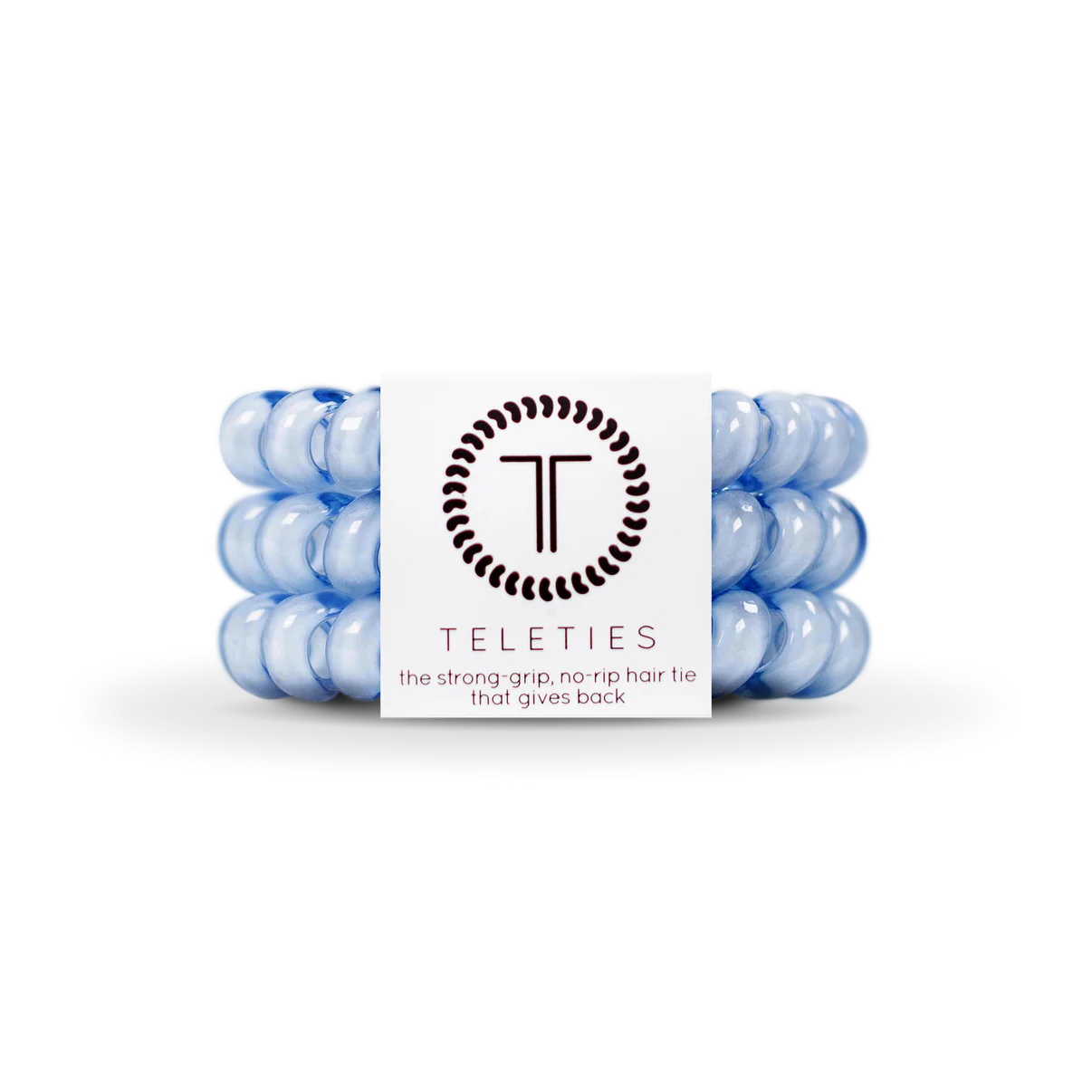 Hold your hair and enhance your style with Teleties Washed Denim Hair Tie--the strong grip, no-rip hair tie that doubles as a bracelet. Strong, pretty, and stylish, Teleties are designed to withstand everyday demands while taking your look to the next level. Three pack