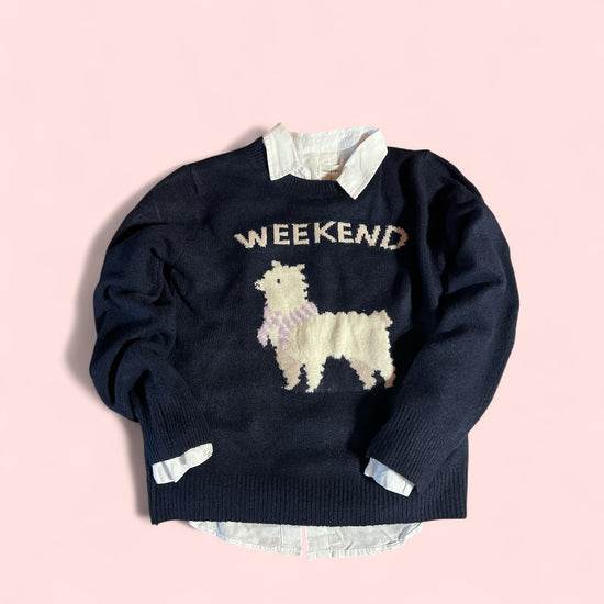Meet the Woolly Wanderer, your new cozy companion for crisp mornings and mountain daydreams. This navy-blue sweater by Mystree features an irresistibly cute alpaca on the front, adding a playful, free-spirited touch to your layered looks. Lightweight yet warm, it pairs well with your favorite jeans, leggings, or flowy skirts for effortless cottagecore or boho styling.